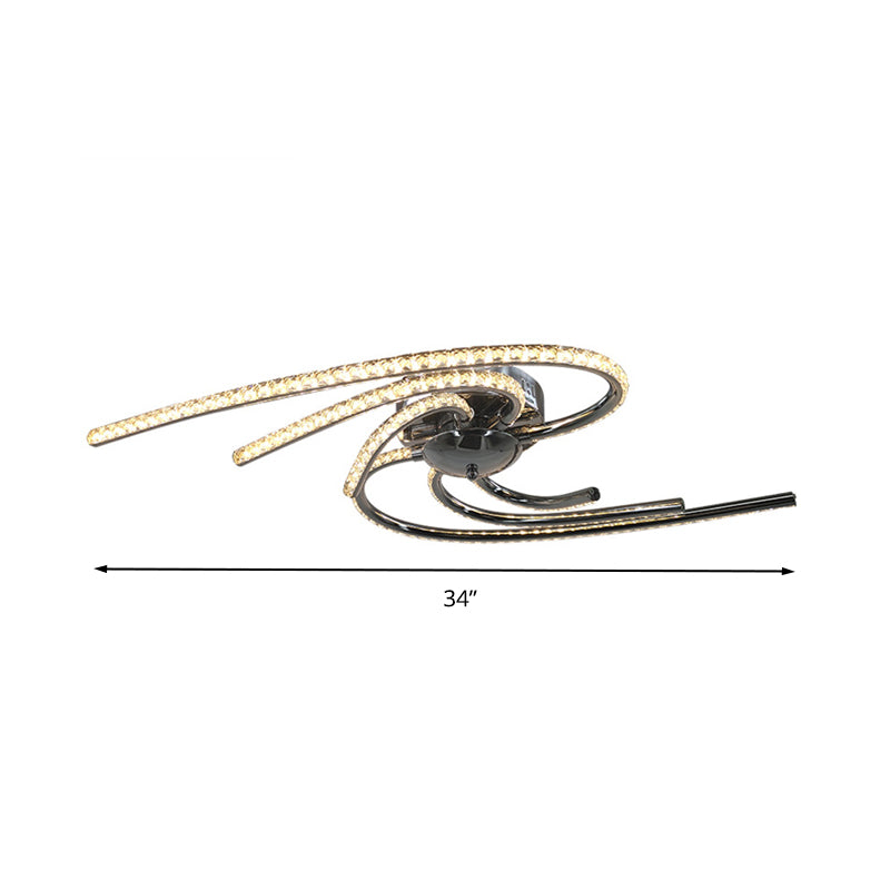 Crystal Twist Flush Light - Minimalist 6-Light Flush Mount in Chrome, Warm/White Illumination