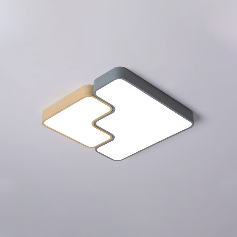 Contemporary Grey Square/Rectangle Flush LED Ceiling Lamp - Choice of 18"/22"/35.5" Acrylic Wide Fixture, White/Warm Light