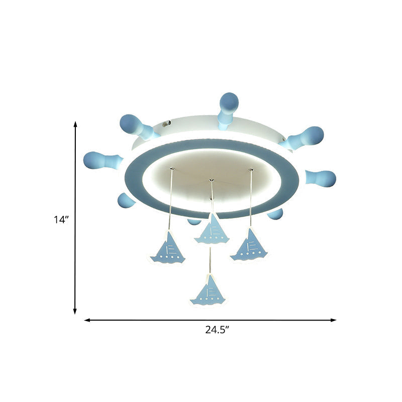 Marine Steering Wheel Flush Light: Kid's Room Ceiling Mount Fixture with Sailing Boat Design - Sky Blue