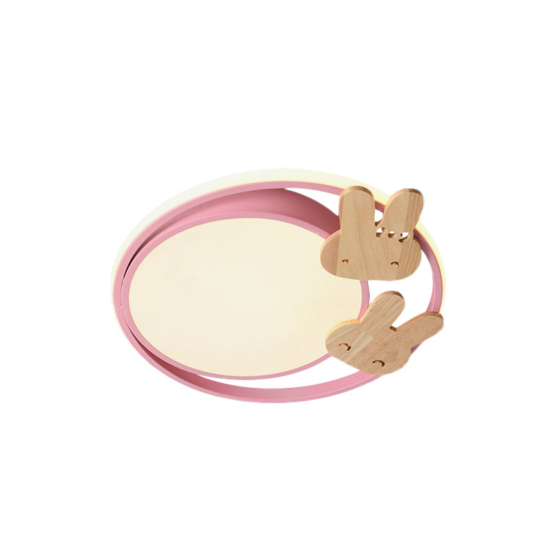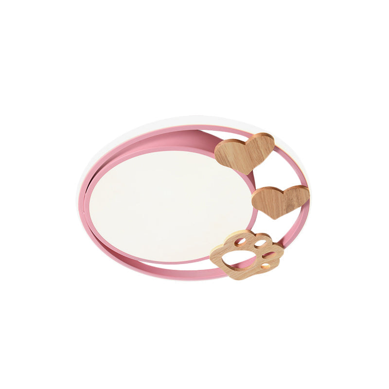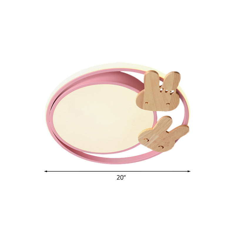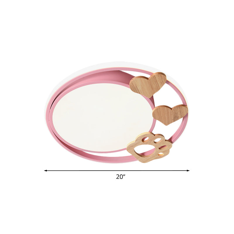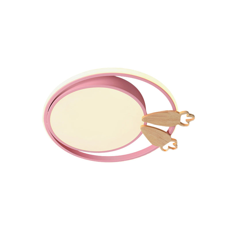 Contemporary Led Bedroom Flush Light With Acrylic Shade & Rainbow Bridge/Windmill/Carrot Décor Pink