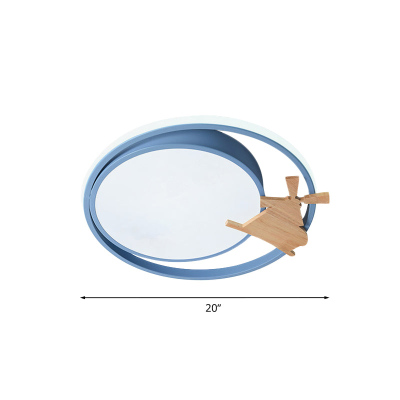 Contemporary Led Bedroom Flush Light With Acrylic Shade & Rainbow Bridge/Windmill/Carrot Décor Blue