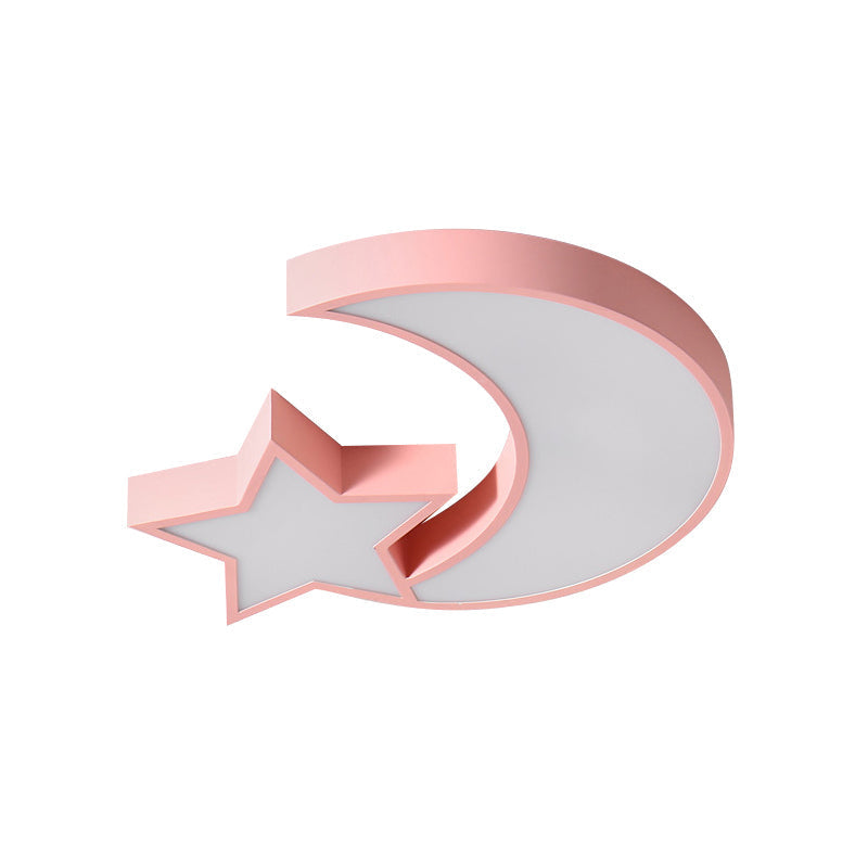 Kid's Bedroom LED Ceiling Lamp - Metal Acrylic Flush Mount Light with Star & Moon Design