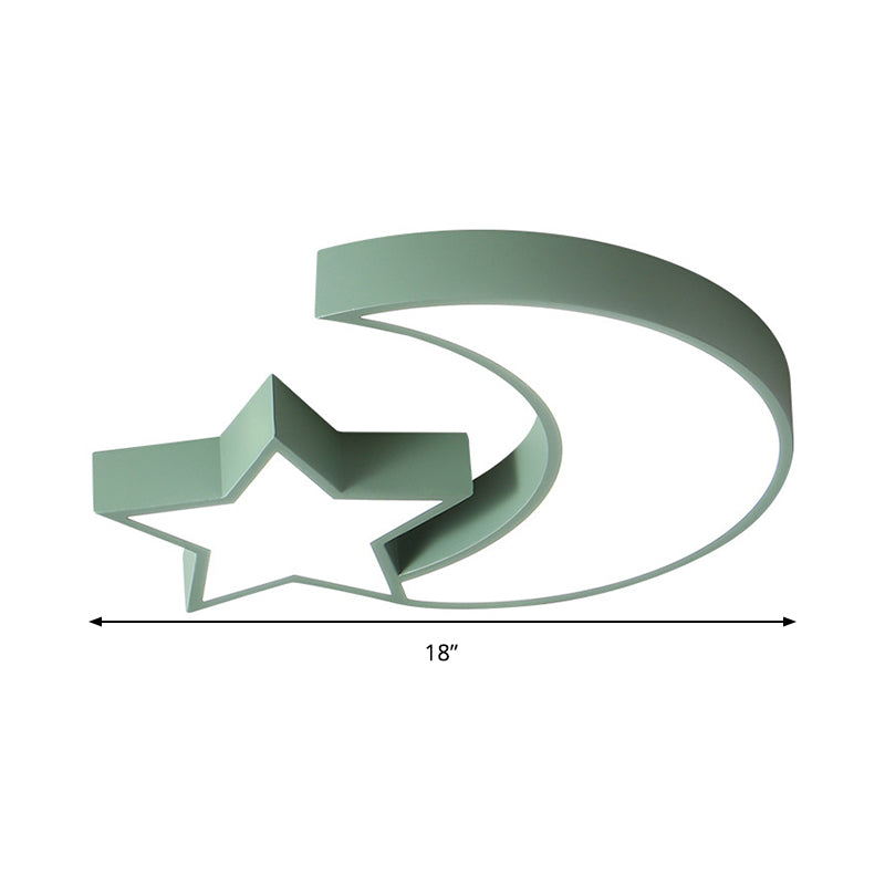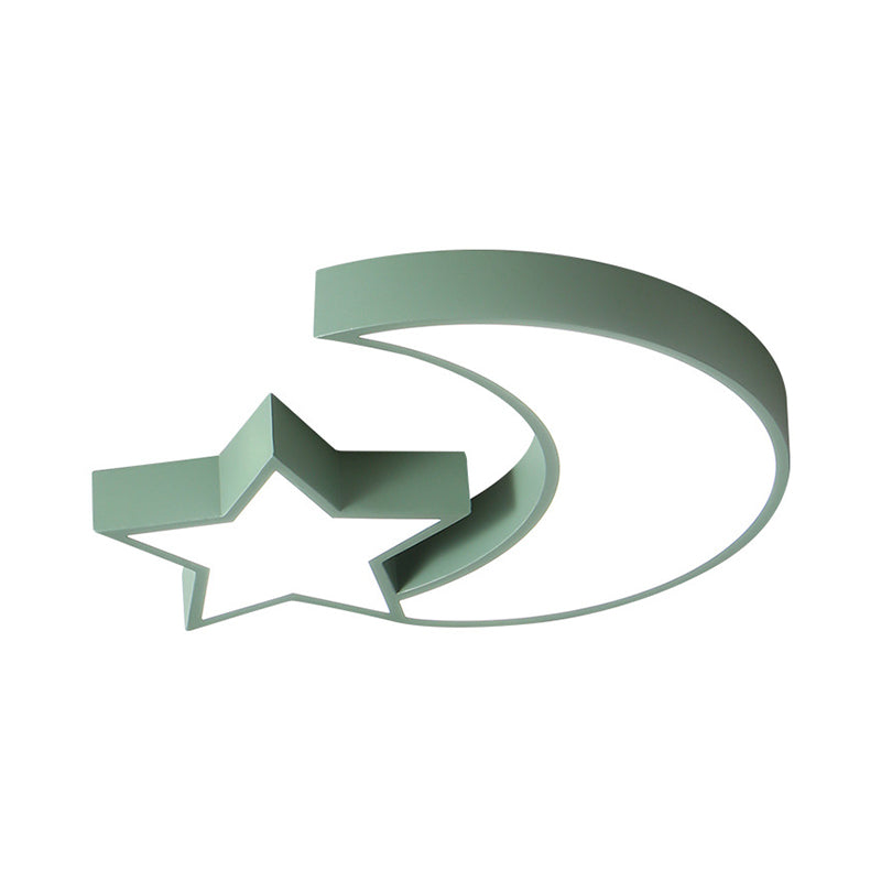 Kids Bedroom Led Ceiling Lamp - Metal Acrylic Flush Mount Light With Star & Moon Design Green / Warm