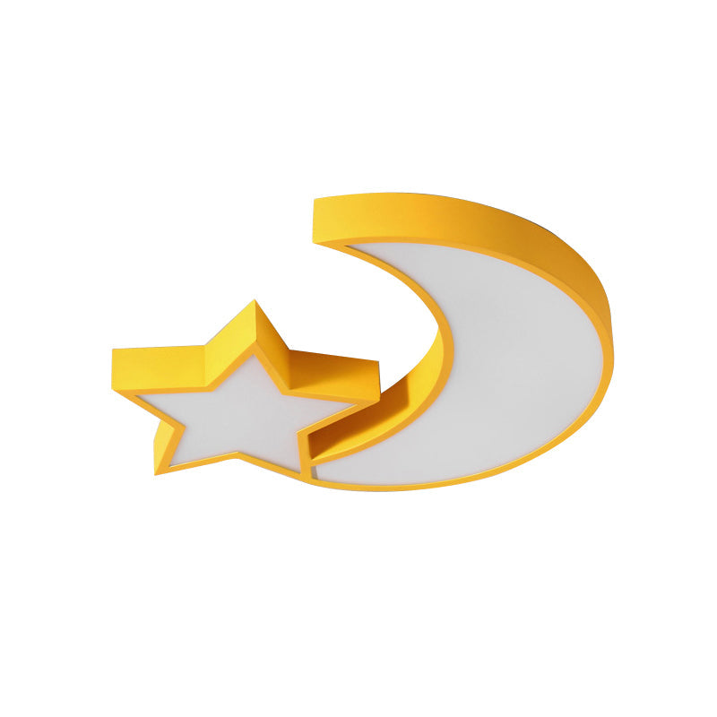 Kids Bedroom Led Ceiling Lamp - Metal Acrylic Flush Mount Light With Star & Moon Design Yellow /
