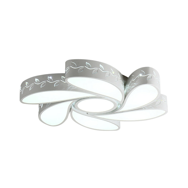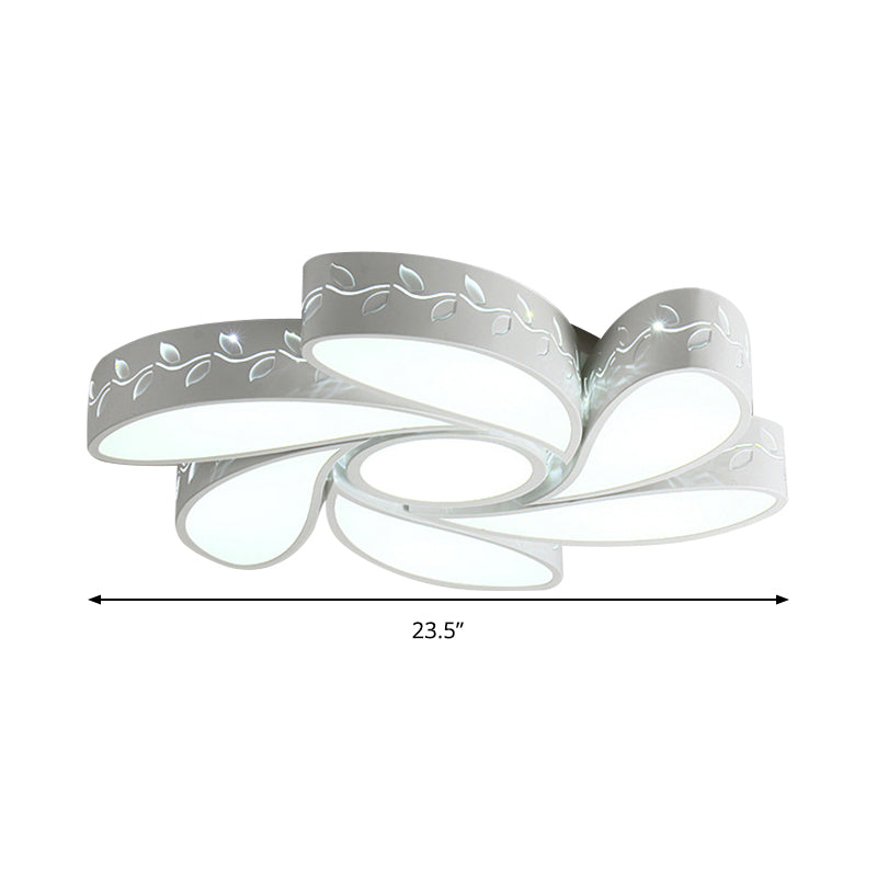 Modern White Metal Hollow Floral Flush Ceiling Light with LED for Bedroom