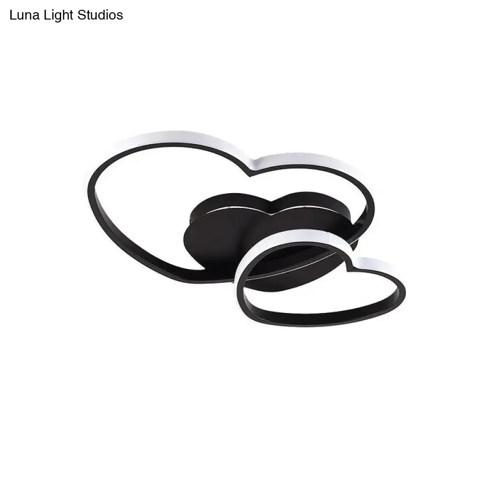 Modern Metal Heart Flush Mount Led Ceiling Light For Bedroom Black / Small