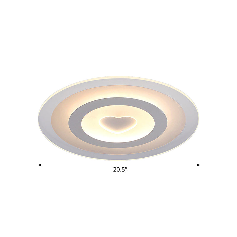 Modern Round Acrylic Flush Mount Light Led - 8/16.5/20.5 Wide Lamp With Heart Pattern Warm/White
