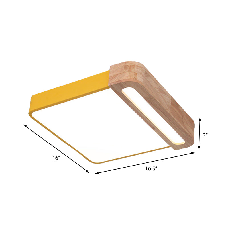Nordic Square Acrylic Flush Light 12’/16’ Led Surface Ceiling Lamp In Grey/White/Red With Wood