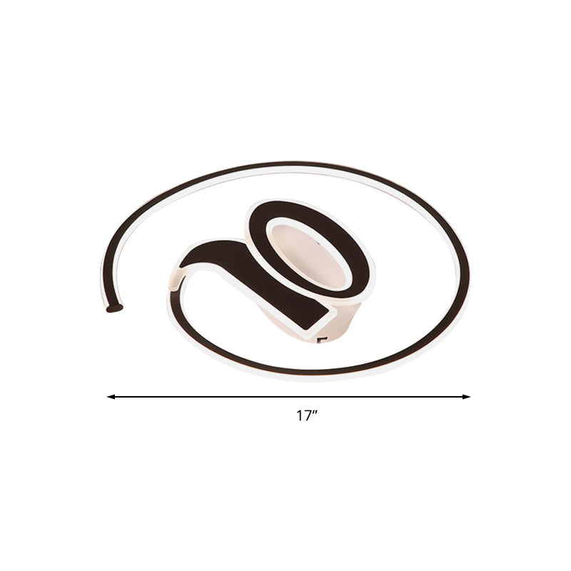 Modern Black Acrylic Led Ceiling Lamp - Number Shaped Flush Light For Kindergarten / 17’ White