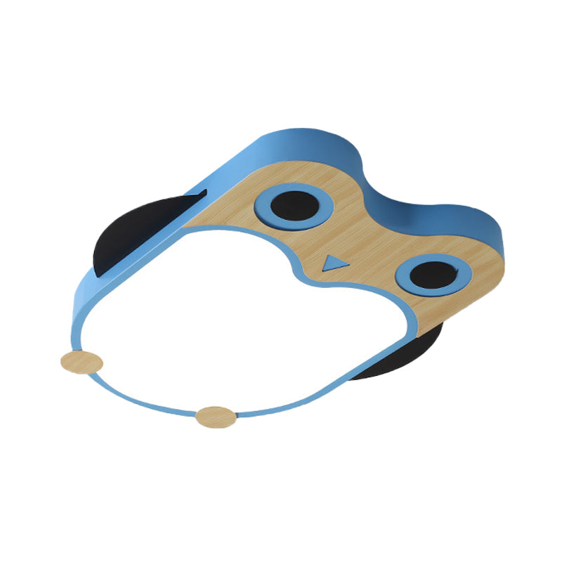 Cartoon Owl LED Flush Mount Lamp for Child Room - Thin Iron Ceiling Light in White/Pink/Blue with Wood Accents