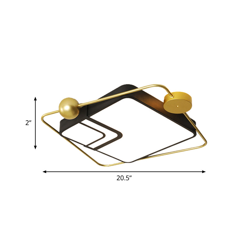 Modern Vintage Metal Flushmount Led Lighting In Warm Light With Diffuser - Square/Round Black/White
