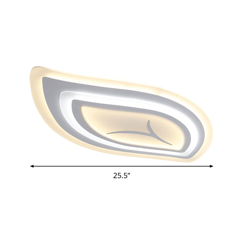 This stylish White Leaf Flush Mount modern acrylic LED ceiling light is the perfect addition to any interior space. This UL-listed ceiling light measures 21.5”/25.5”/33.5” in size and length respectively. The fixture width is 14”/16”/21.5”, while the fixture height is 3”/6”. Not only is it visually appealing, this ceiling light is environmentally friendly and energy-saving with efficient LED bulbs. It also offers maximum bulb wattage of 39 Watts and under 40 to 59 Watts, and SMD bulb base. The LED type ceiling light provides even color temperature from white warm remote control stepless dimming. Two voltage options - 110V-120V and 220V-240V - make it suitable for many different lighting needs. Made of high quality acrylic material, this beautiful modern ceiling light comes in white color and will surely add a touch of sophistication and grace to your interior space. It is perfect for living rooms, bedrooms and hallways. Bulb is included with purchase.