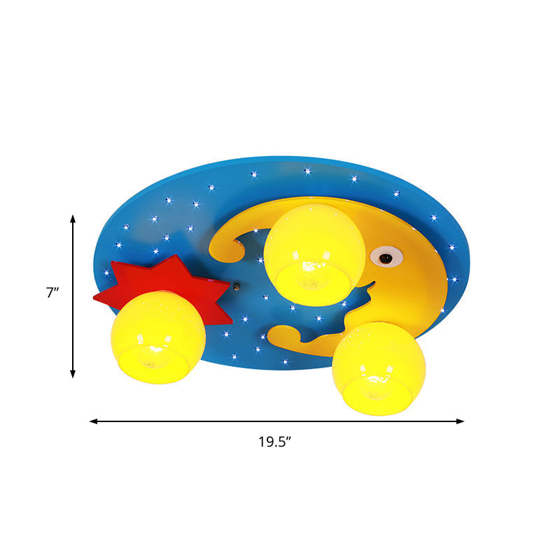 Blue LED Cartoon Ceiling Lamp for Child's Bedroom - Wood Night View Flush Mount Light