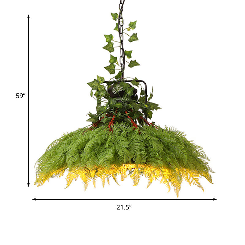 Antique Green Plant Led Pendant Lamp Metal Head Down Lighting - 14’/18’/21.5’ Wide For Restaurant