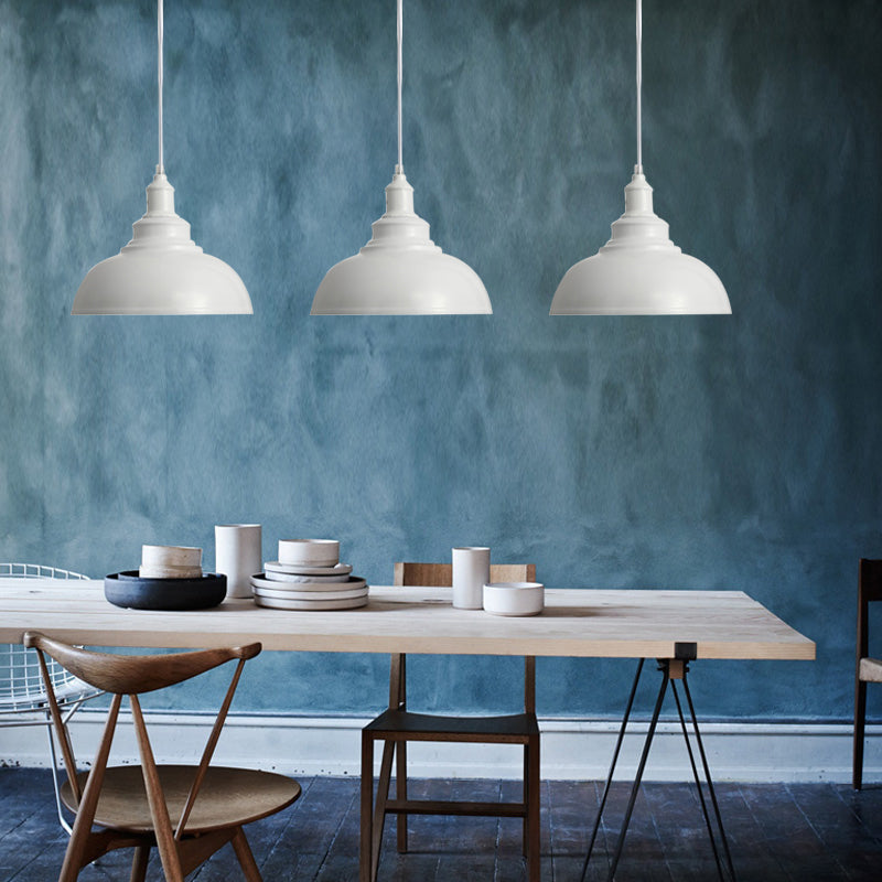 Adjustable Cord Pendant With Metal Dome Shade In Retro Black/Gray - 12’/14’/16’ W White / 12’