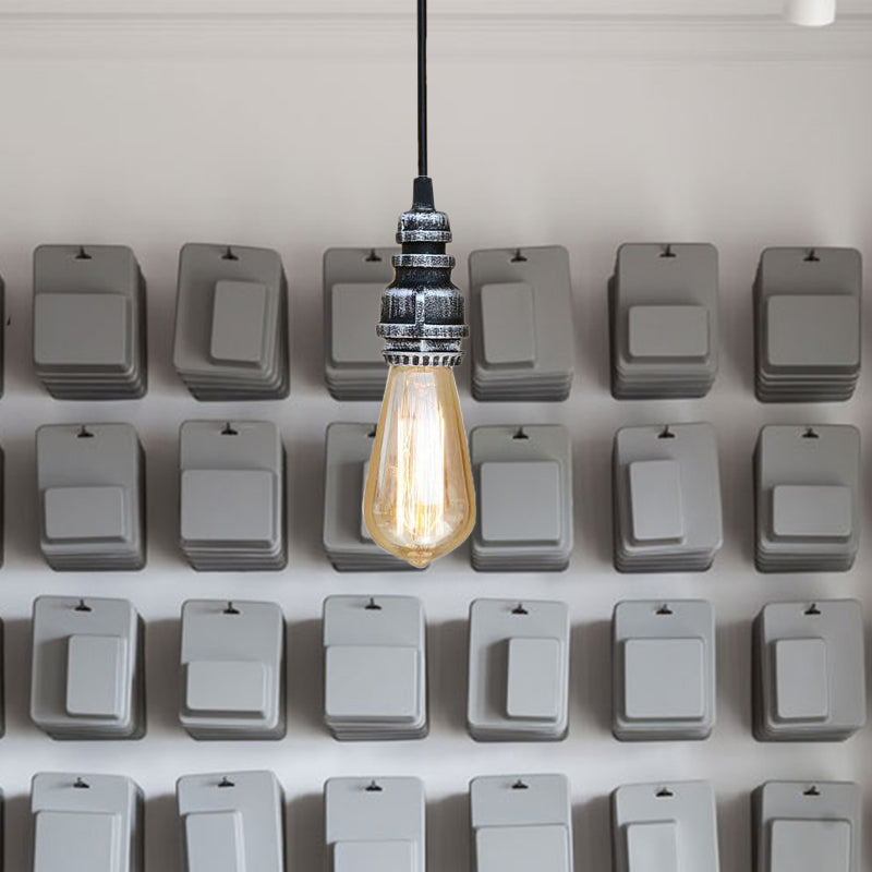 Industrial Open Bulb Ceiling Fixture With Adjustable Metal Head And Pipe - Black/Silver Antique