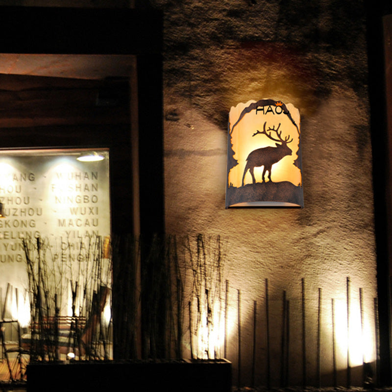 Rust One Light Retro Metal Sconce with Unique Tree/Elk Pattern – Stylish Half Cylinder Lighting Fixture