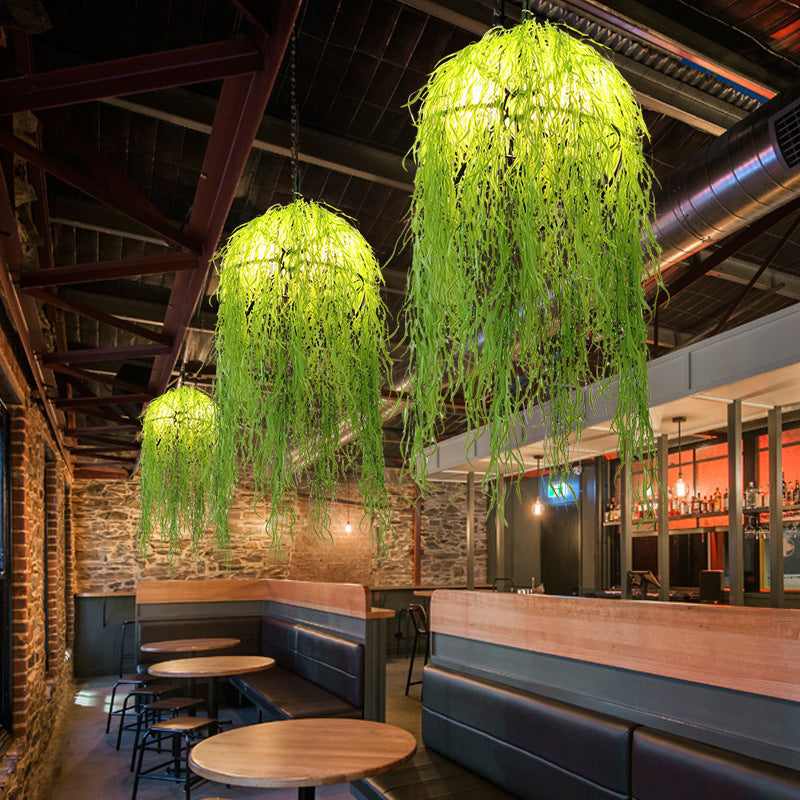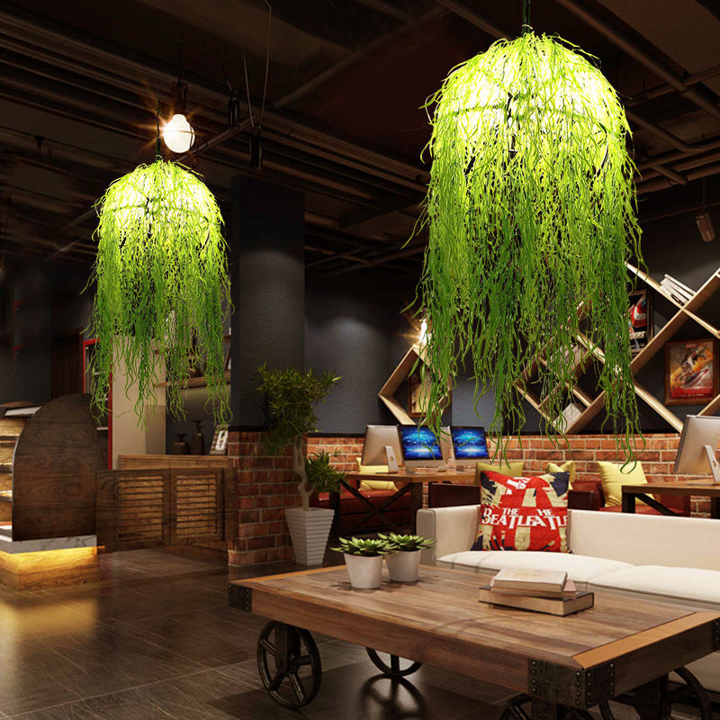 This chandelier is perfect for anyone who is looking for a unique and stylish light fixture to hang in their home. The 3 heads bell cage chandelier is made from metal and is painted green, giving it an industrial look. The chandelier measures 18" wide and 21.5" wide, and hangs 37.5" tall. The light bulb is not included, but the chandelier is compatible with LED, incandescent, and fluorescent light bulbs. The chandelier has a wicker ornament, adding a touch of style to the industrial design. This chandelier is perfect for hang in any room of your home.