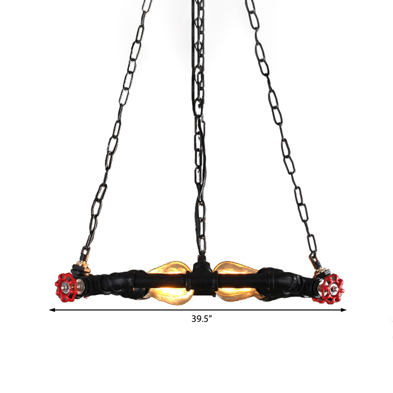 Industrial Black Metal Ceiling Chandelier with Clear Glass and Valve – 4-Light Hanging Fixture
