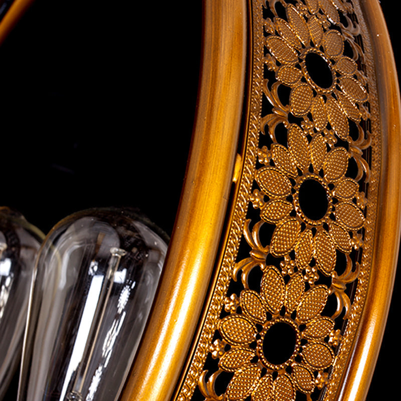 Metal Hanging Light: Brass Industrial Chandeliers - Bare Bulb 3-Light For Living Room