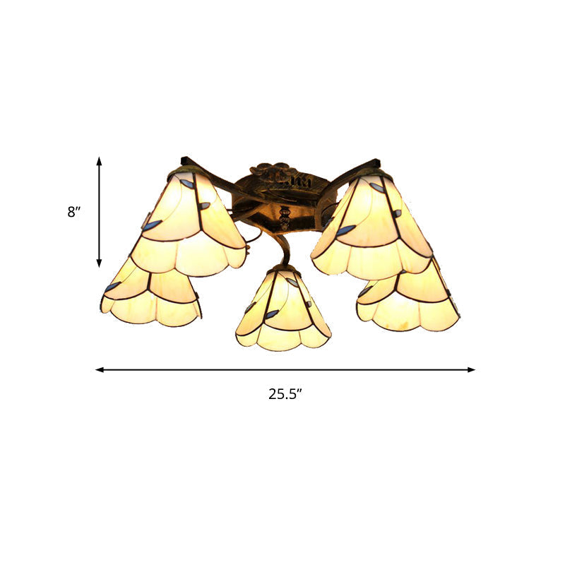 Tiffany Stained Glass Ceiling Light With 5 Scalloped Heads In Antique Bronze - Perfect For Bedroom /