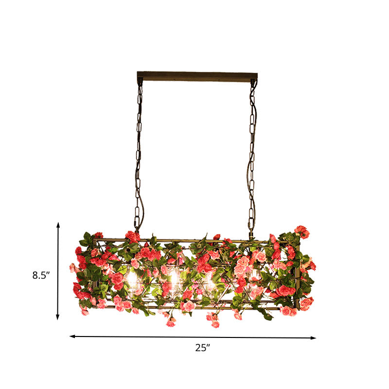 Industrial Rectangular Brass LED Pendant Light with 4 Bulbs - Ideal for Bedroom