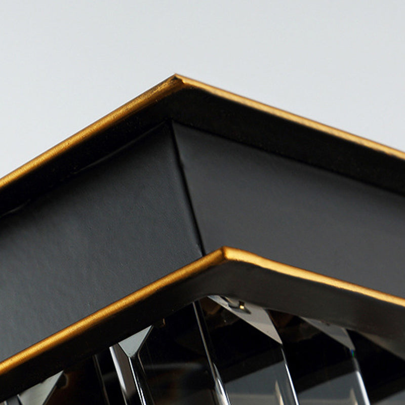 Smoke Gray Crystal Block Rectangle Chandelier Lamp - Traditional, 8/11 Heads, Matte Black Hanging Light for Dining Room
