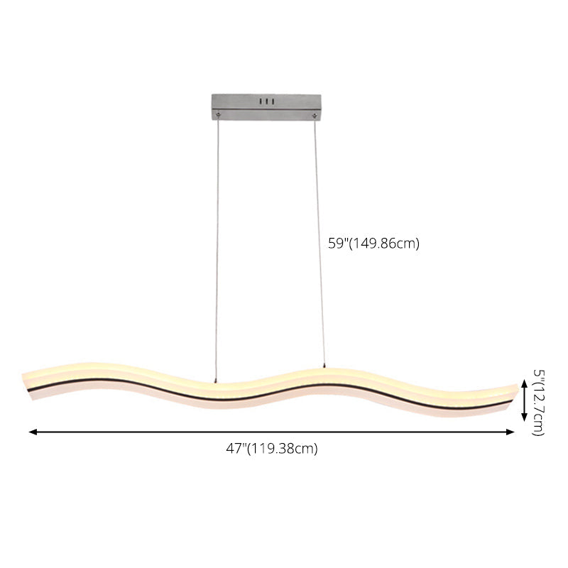 The White Wave Island Lighting Fixture Modern Style LED Acrylic Pendant Lighting Fixture is the perfect accent piece for any room. The sleek and sophisticated design features a stunning mix of modern and contemporary styles. The fashionable and functional island lighting fixture comes with a white warm natural remote control stepless dimming, making this the ideal piece for mood and task lighting. With a size of 25 inches and above, a length of 47 inches and a fixture width of 5 inches, this light is sure to make a statement. The chain/cord length is 59 inches for easy install and the fixture type is linear for ease-of-use.