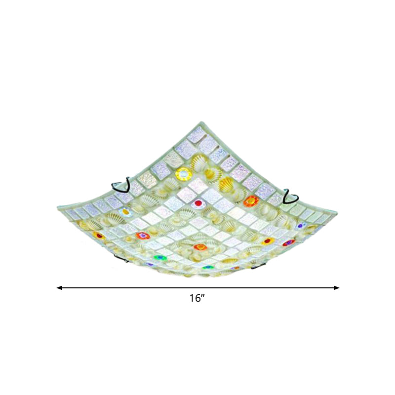Tiffany Style Square Shell Flush Mount Ceiling Light with 3 Lights, White - Ideal for Kitchen (12"/16"/19.5" Wide)
