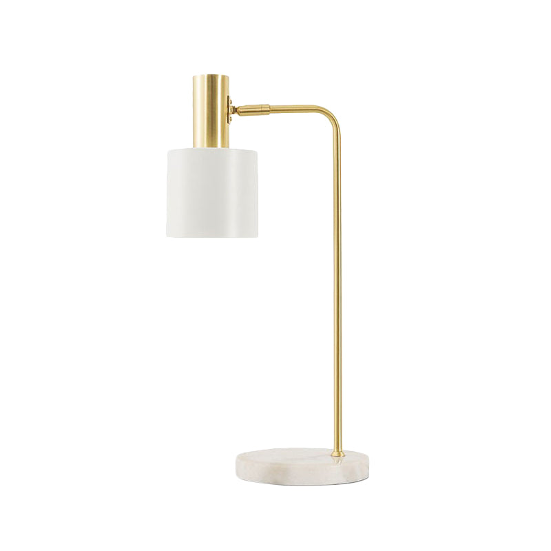Sleek 1-Bulb Blue/White Marble Nightstand Lamp: Perfect Bedroom Night Table Light With Metal Drum