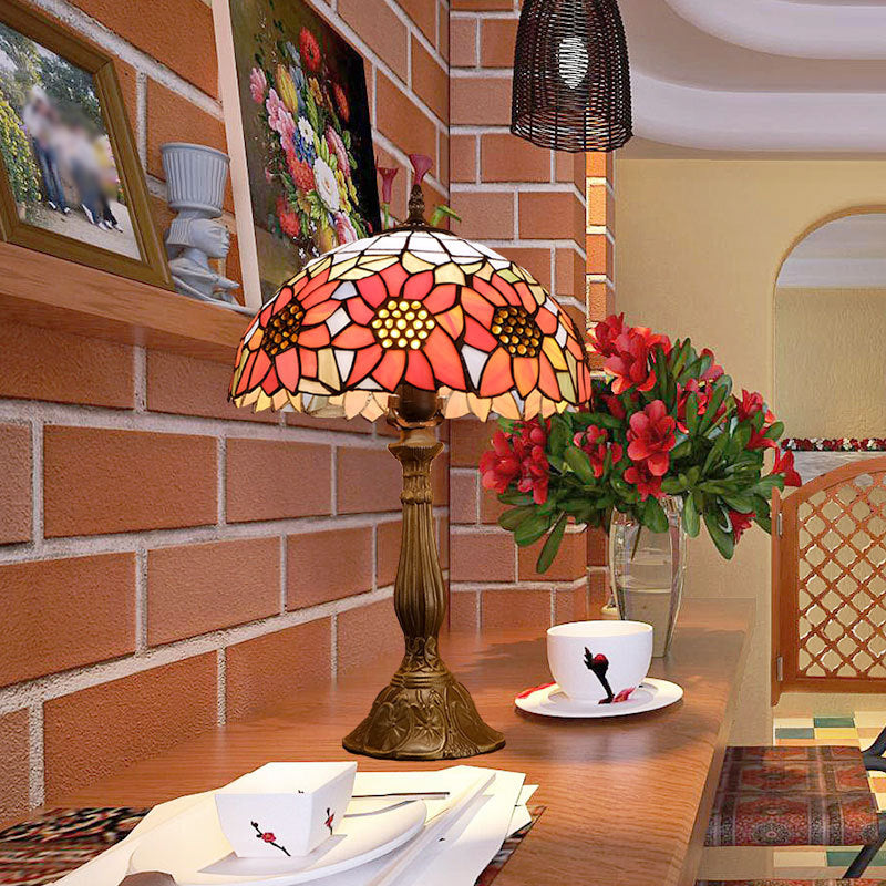 Orange Stained Glass Nightstand Lamp - Bowl Shade, Sunflower Pattern - Classic Table Lighting