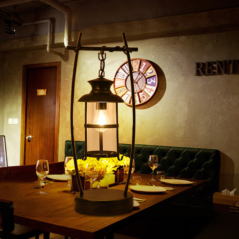Coastal Brass Desk Lamp with Clear Glass Lantern Shade - 1 Light, Oval Frame