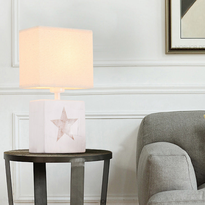 This product is a floor lamp that is perfect for reading or studying in your room. The lamp has a white or yellow smiley face, star, or plant design on the porcelain base. The shade is made of durable fabric in a barrel drum or rectangle shape. The light type is LED, incandescent, or fluorescent.