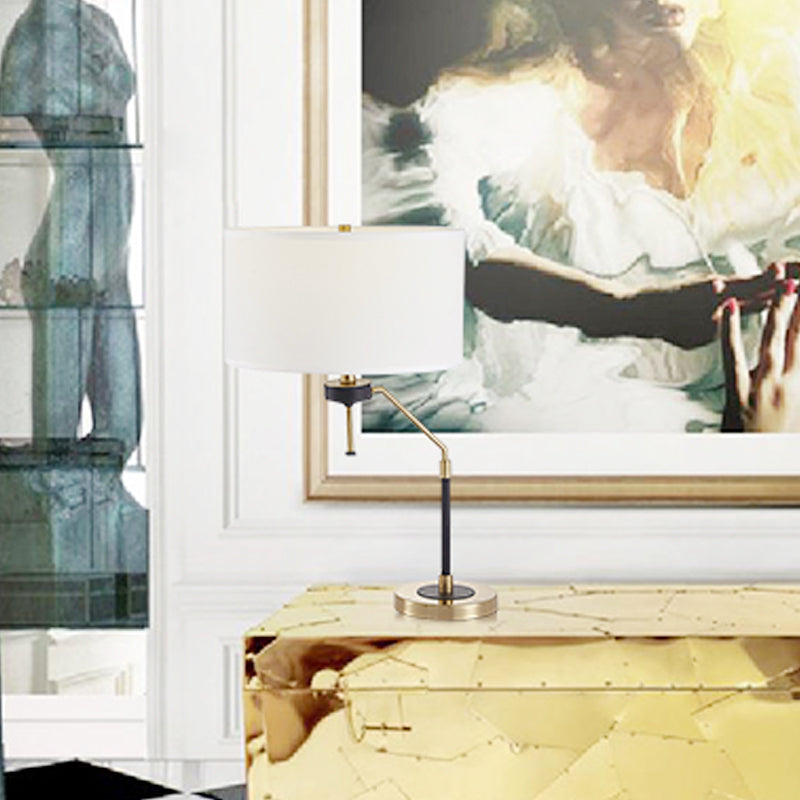 Modern White Desk Lamp with Fabric Shade - Small Cylindrical Table Light