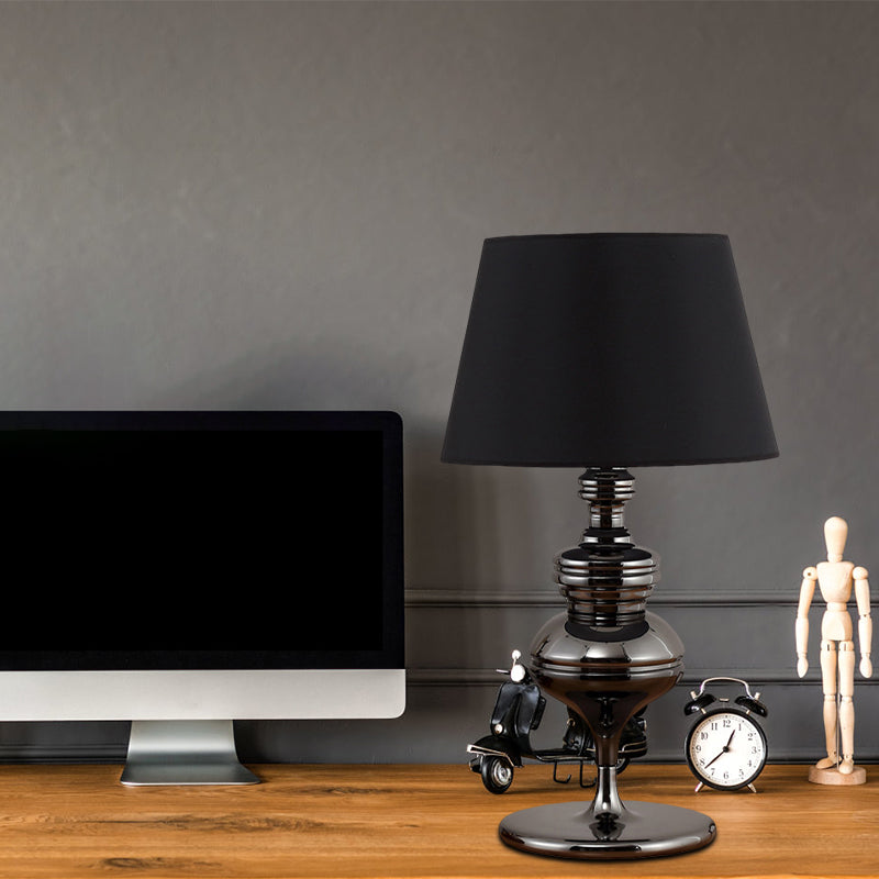 Rustic Fabric Conical Table Lamp with Gourd Base - 1 Bulb - Black - Living Room Nightstand Light