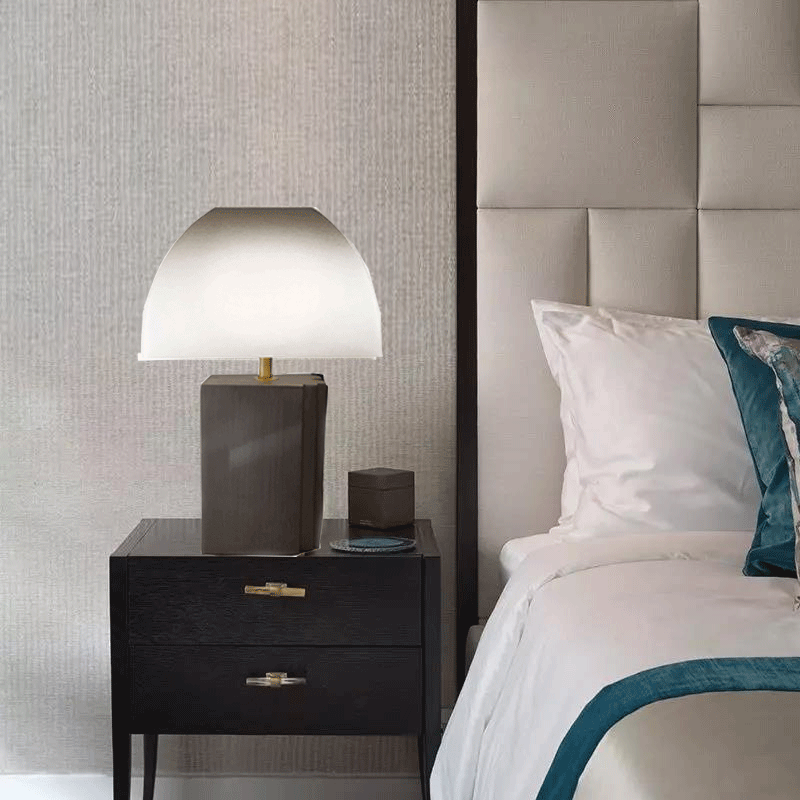 Modern Grey Curvy Task Lamp: 1-Head Fabric Desk Light with Resin Base