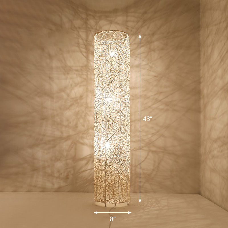 This product is a beautiful, handcrafted floor lamp that will bring an elegant Asian touch to any tea room or home. The shade is made of natural rattan and dyed in a rich brown, complementing the metal fixtures and square plate base. Three lightbulbs (not included) sit within the shade, providing ample lighting for any space. Measuring 43 inches tall, this lamp is the perfect height for any table or counter.