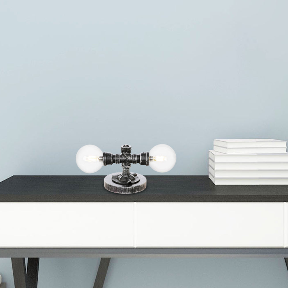Antique Silver Round Shade Table Lamp with Clear/Amber Glass - Industrial Style, 2 Lights, and Sturdy Base