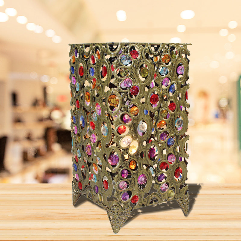 Art Deco Metal Brass/Bronze Table Lamp with Rectangular Shade - Elegant Nightstand Lighting for Living Room