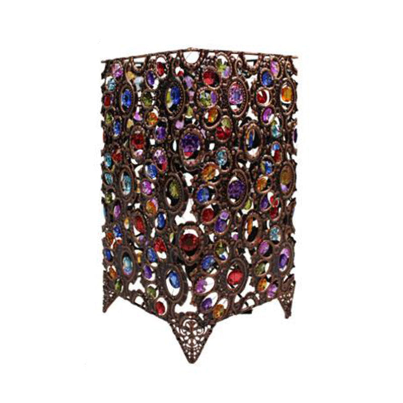 This is a floor lamp that is made out of metal with a brass/bronze finish. It has a rectangular shape and only one light. It is classified as art deco style and would be a great addition to any living room as a nightstand light. The light itself is not included, but it is compatible with LEDs, incandescents, and fluorescents. It also has a voltage of 220V-240V or 110V-120V.
