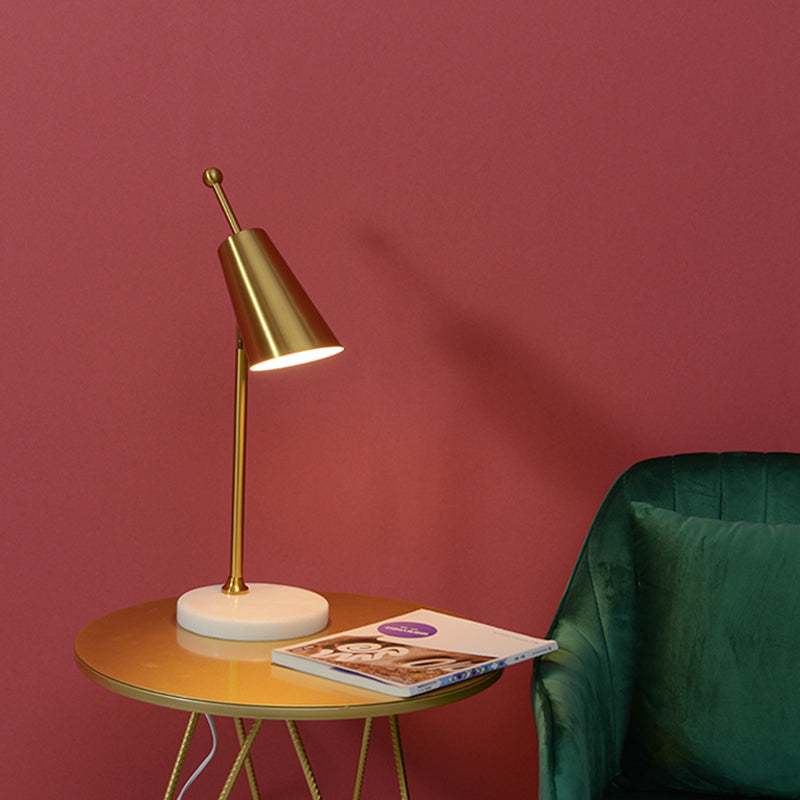 Contemporary Metal Gold Nightstand Lamp - Tapered Night Table Light for Bedroom