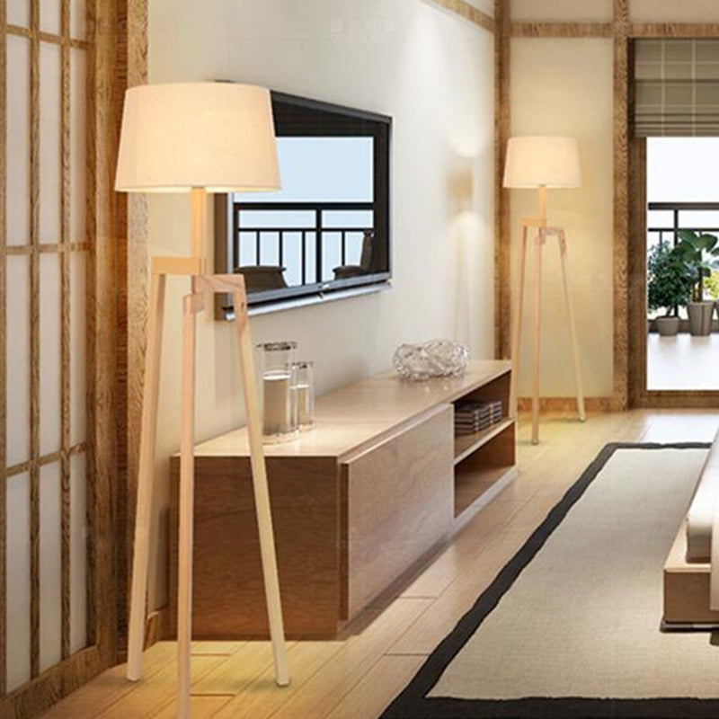 Modern Wood Tripod Floor Lamp With Fabric Shade - Simple & Stylish Design