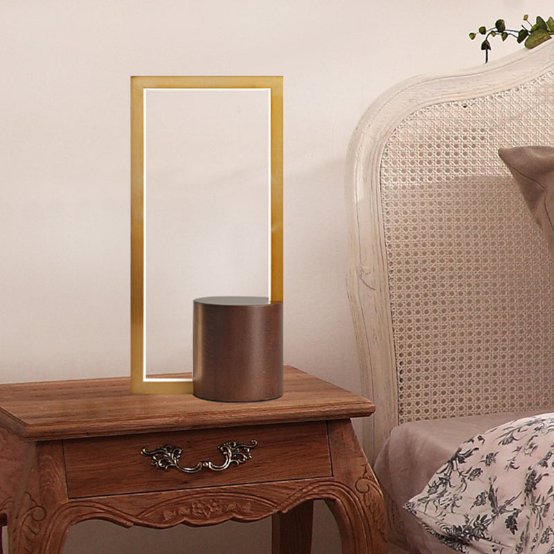 Modernist LED Metal Task Light with Wood Base - Rectangular Brown Reading Lamp