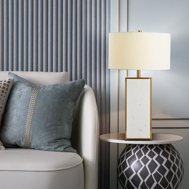 Contemporary White Fabric Stone Drum Table Light: Stylish 1-Head Nightstand Lighting for Living Room