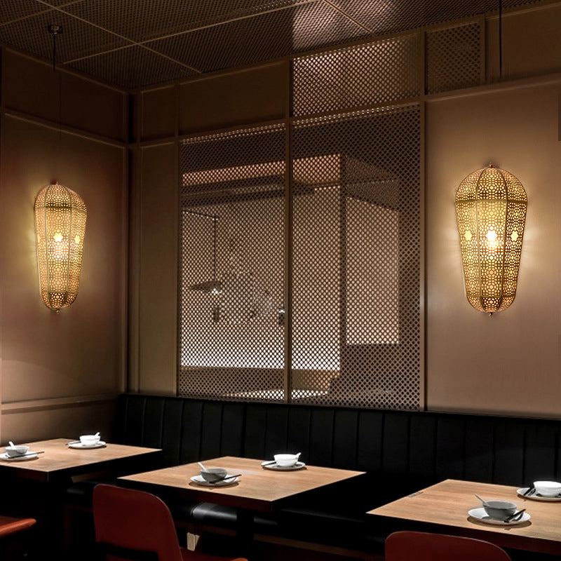 Turkish Brass Lantern Sconce - Balloon Shaped Hollowed Out Design Wall Mount Lamp