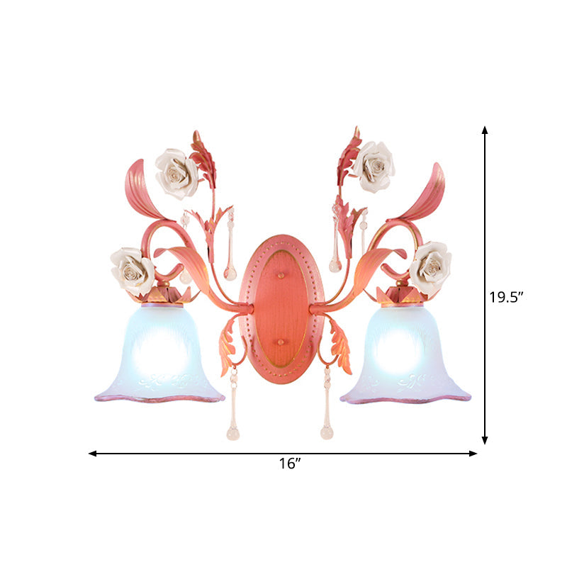 Stunning Pink Frosted Glass Bellflower Wall Sconce With Crystal Accent: Countryside 1/2-Light Lamp