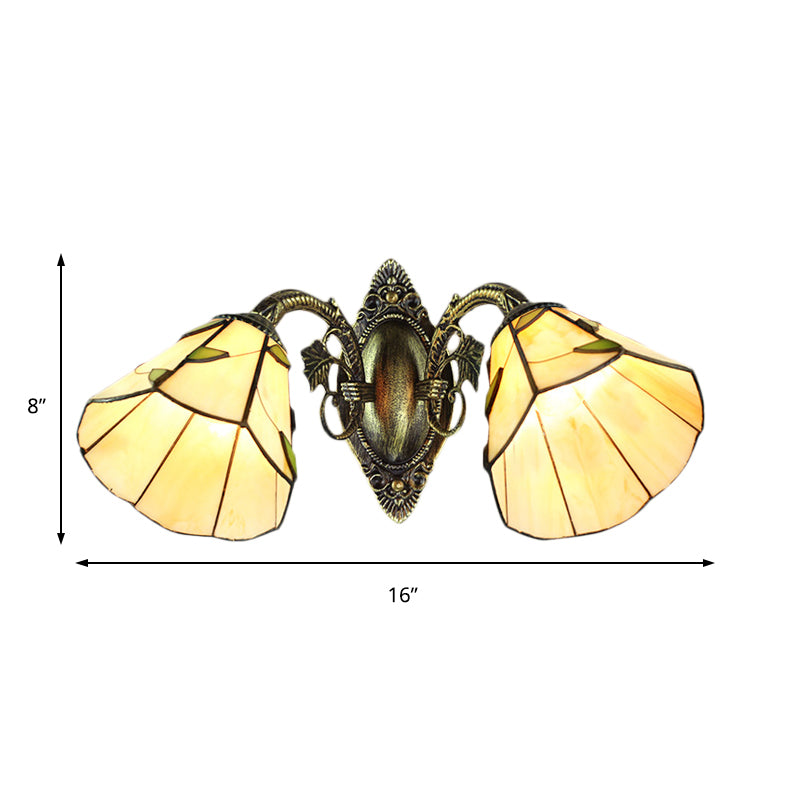 Vintage Industrial 2-Head Stained Glass Wall Sconce with Leaf Pattern