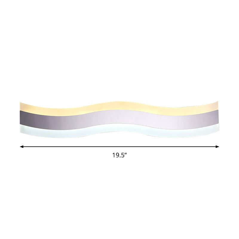 Wavy LED Vanity Mirror Light, Single Acrylic Light, Antifog, Warm/White, 16"/19.5" Wide