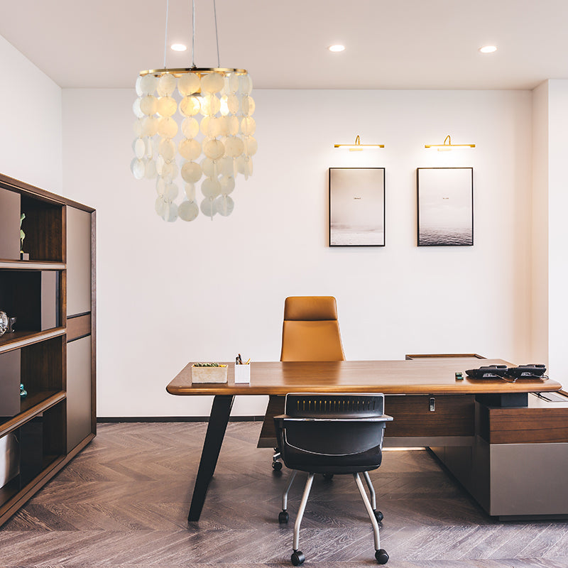 Modern Led Pendant Ceiling Light With White Shell Wind Chime Design For Bedroom