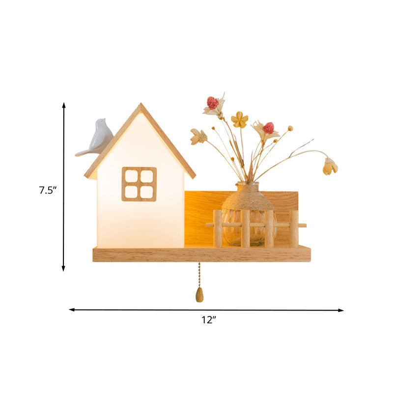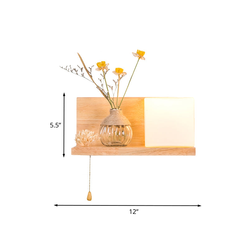 Nordic Milky Glass Wall Sconce with Wood Spiral/Cylinder Design - Wall Mounted Light Fixture